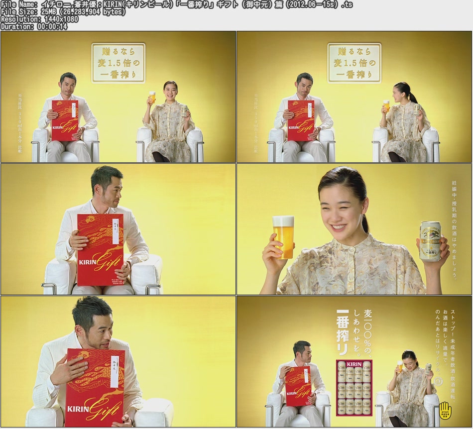 Tvcm Cut イチロー 蒼井優 Kirin キリンビール 一番搾り ギフト 御中元 篇 2012 06 15s