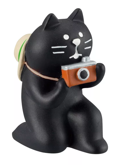 日本decole Concombre 旅貓蹲著拍照的黑貓正品