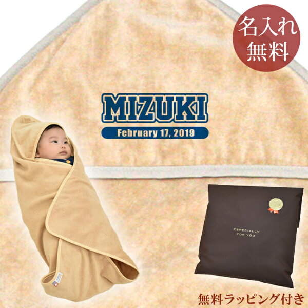 出産祝い おくるみ Shirofuwaフード付き名入れ今治バスタオル