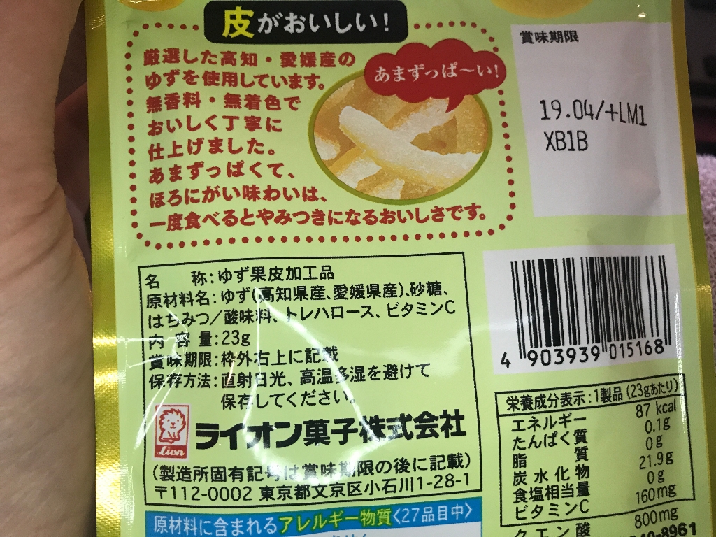 楽天市場 ライオン菓子 そのまんまゆず 23g 6個 賞味期限2020 11